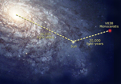 This diagram shows the location of V838 Mon in the Milky Way Galaxy.
