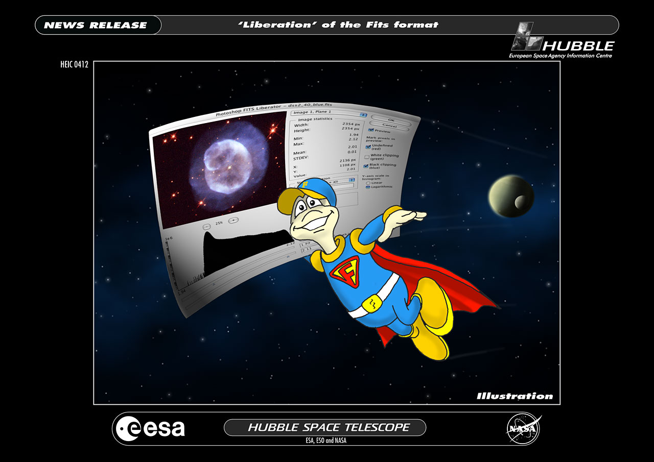 The free software plug-in for Adobe Photoshop¸ or Adobe Photoshop Elements¸ developed by imaging scientists at the European Space Agency, the European Southern Observatory and NASA makes the immense wealth of astronomical images and spectra stored in data archives around the world accessible to the layman.