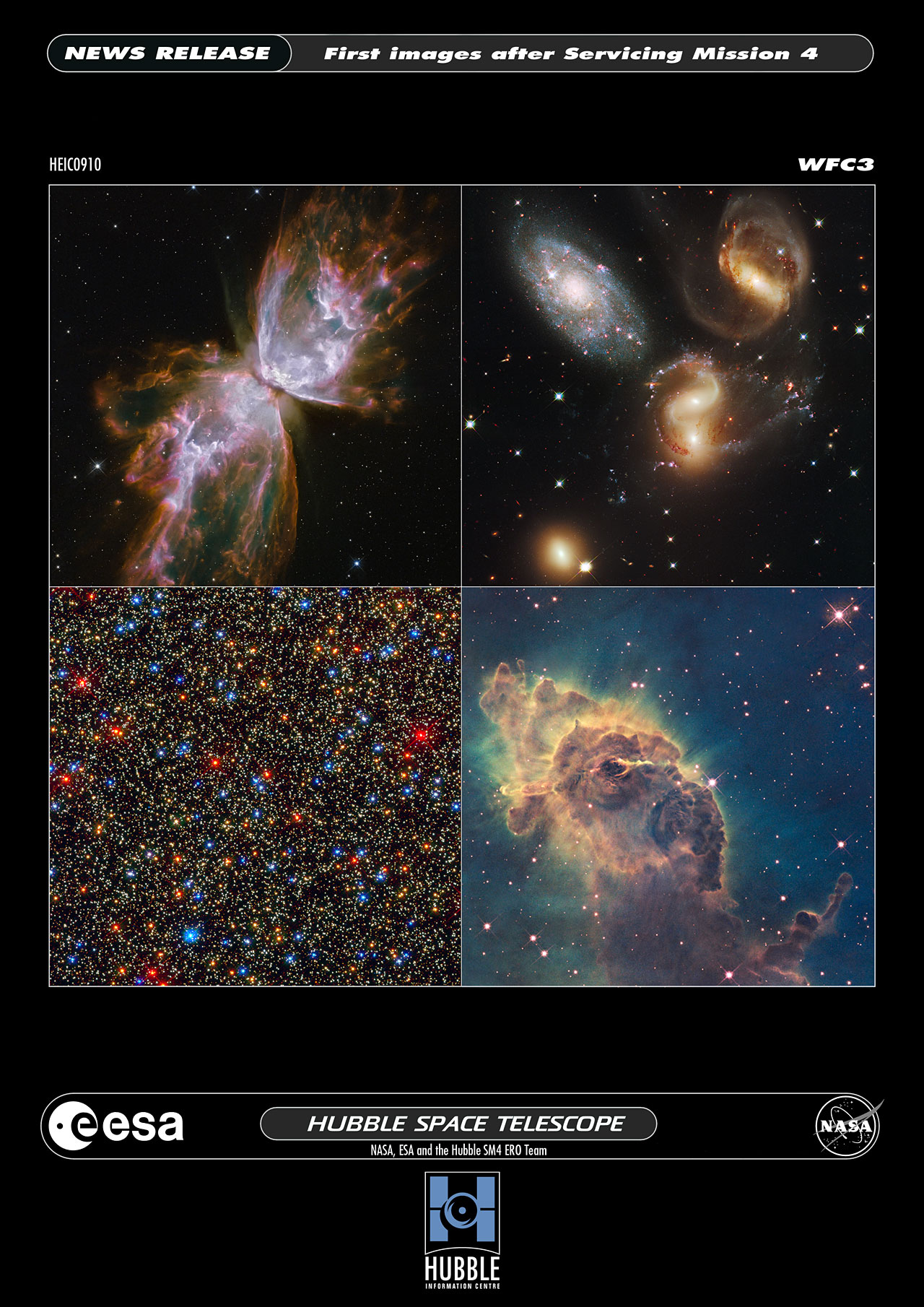 These four images are among the first observations made by the new Wide Field Camera 3 aboard the upgraded NASA/ESA Hubble Space Telescope.