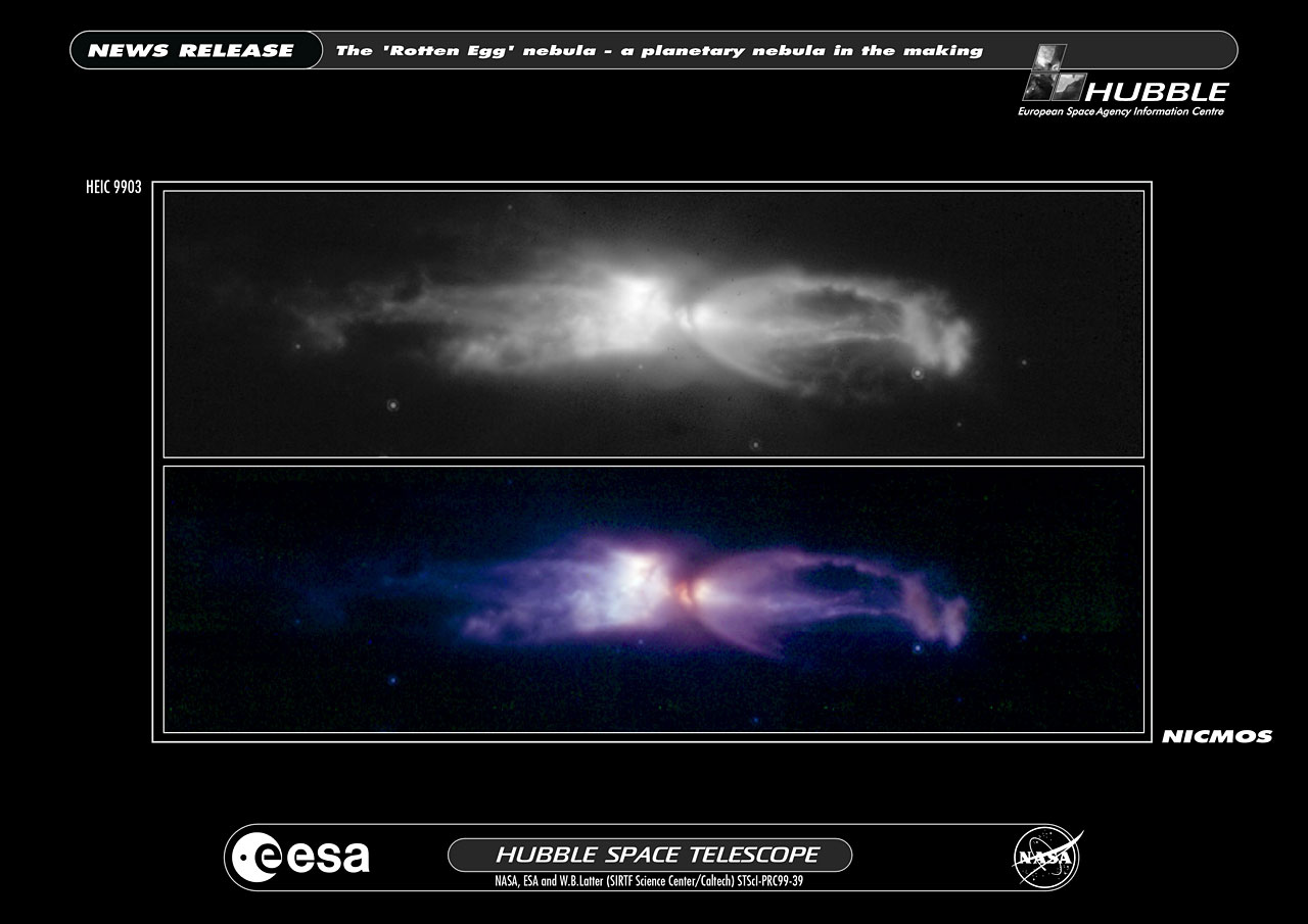 The object shown in these NASA/ESA Hubble Space Telescope images is a remarkable example of a star going through death throes just as it dramatically transforms itself from a normal red giant star into a planetary nebula. This process happens so quickly that such objects are quite rare, even though astronomers believe that most stars like the Sun will eventually go through such a phase.