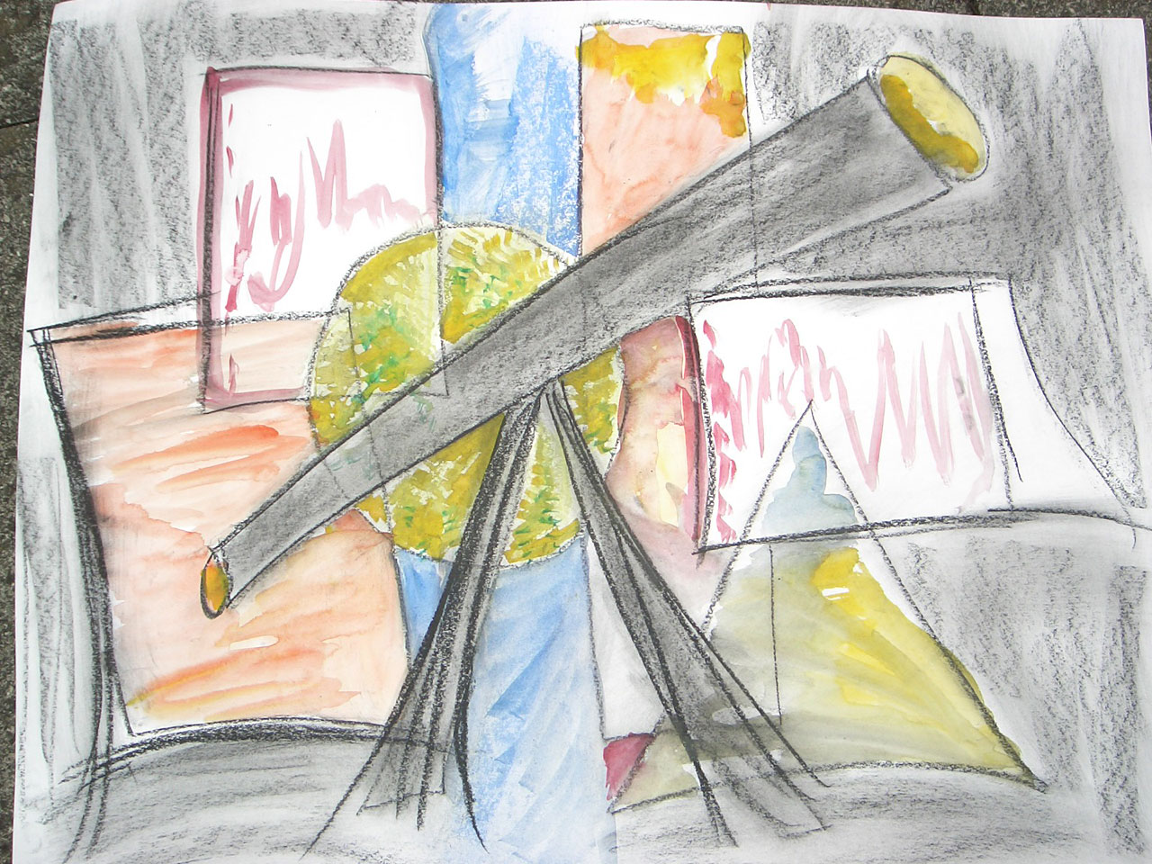 Telescopic Fringes in charcol, pastel and aquarell on paper. Approx. 60 x 55