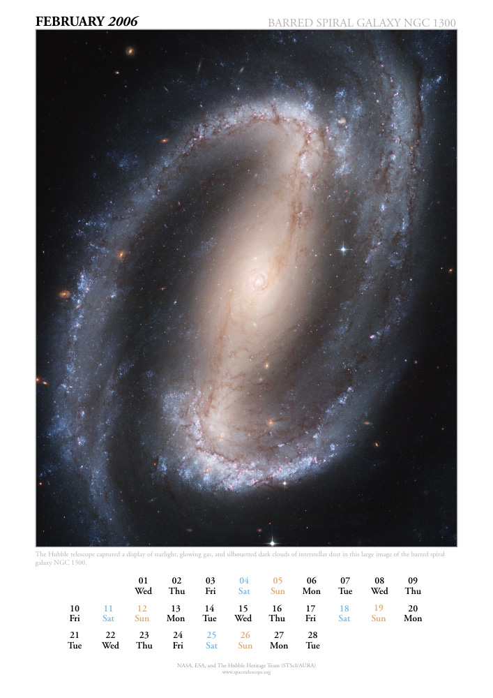 The Hubble telescope captured a display of starlight, glowing gas, and silhouetted dark clouds of interstellar dust in this large image of the barred spiral galaxy NGC 1300.