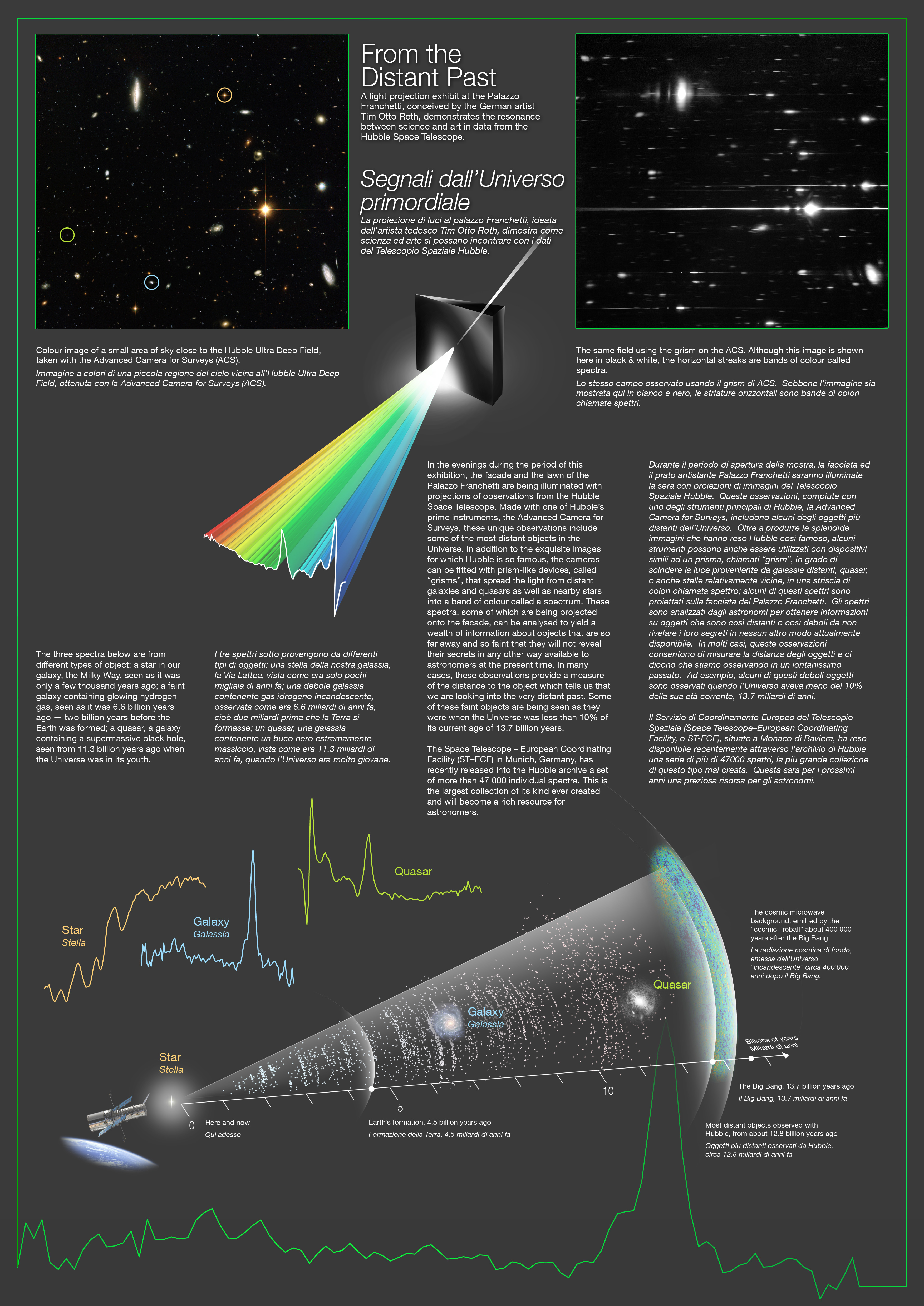 A light projection exhibit at the Palazzo Franchetti, conceived by the German artist Tim Otto Roth, demonstrates the resonance between science and art in data from the Hubble Space Telescope.