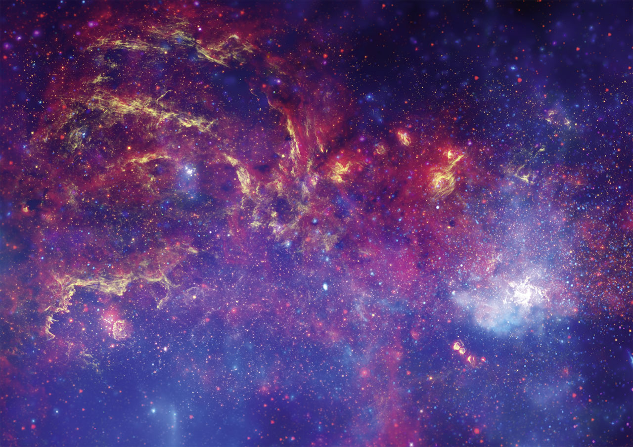 A never-before-seen view of the turbulent heart of our Milky Way galaxy provided by the NASA/ESA Hubble Space Telescope and its companion Great Observatories (the Spitzer Space Telescope and the Chandra X-ray Observatory) commemorated the 400 years since Galileo first turned his telescope to the heavens in 1609. Read more about this image here.