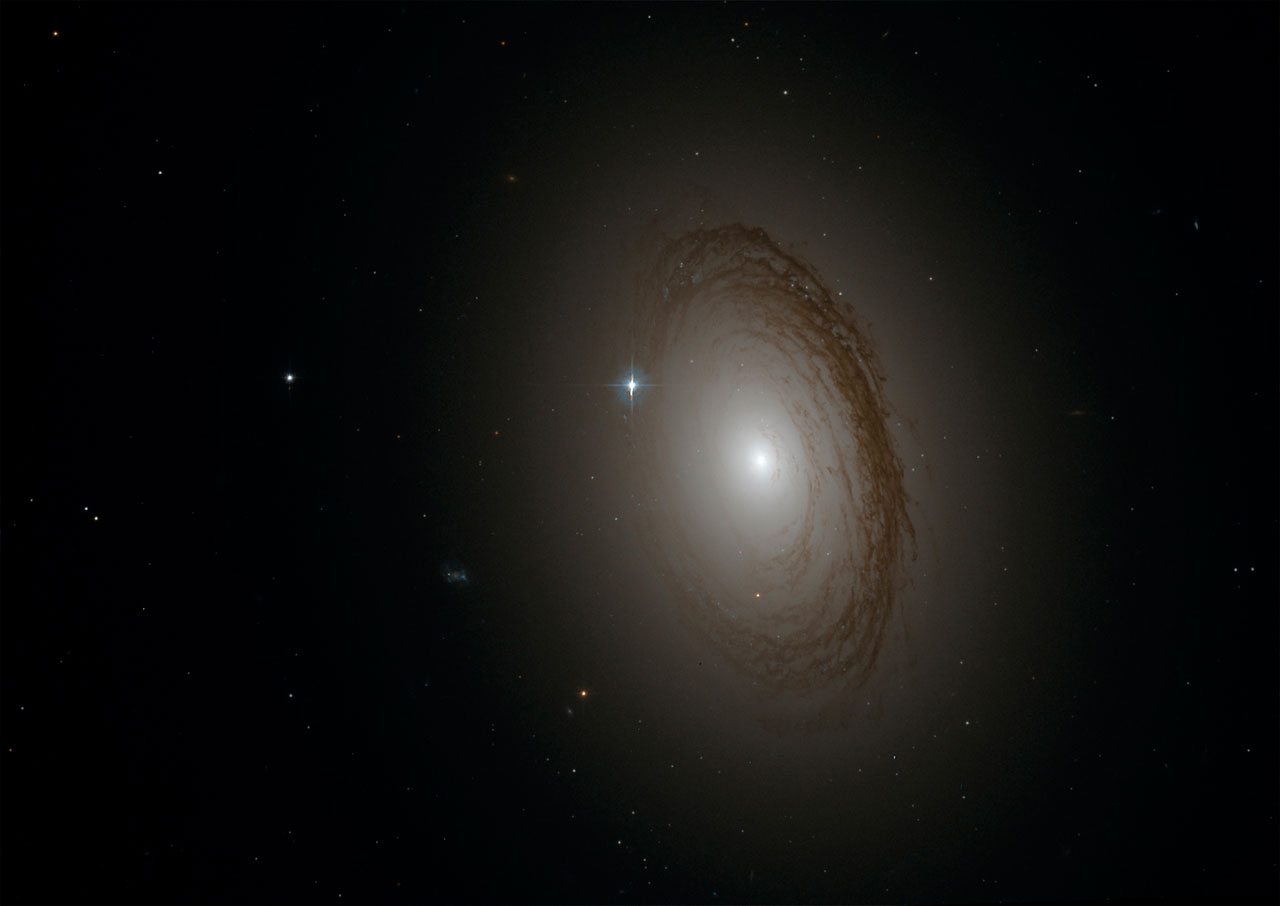Seen here is NGC 7049, the brightest of a three-galaxy system, whose dark dust lanes block the light of it's inner stars and give it a structure that has elements of both a elliptical galaxy and a spiral galaxy. It lies 100 million light years away and spans about 100,000 light years in diameter. This image was taken with the Hubble Space Telescope's Advanced Camera for Surveys (ACS) using two wide-band filters (F435W and F814W) in March of 2003 and obtained from the Hubble ESO/ST-ECF Archives.