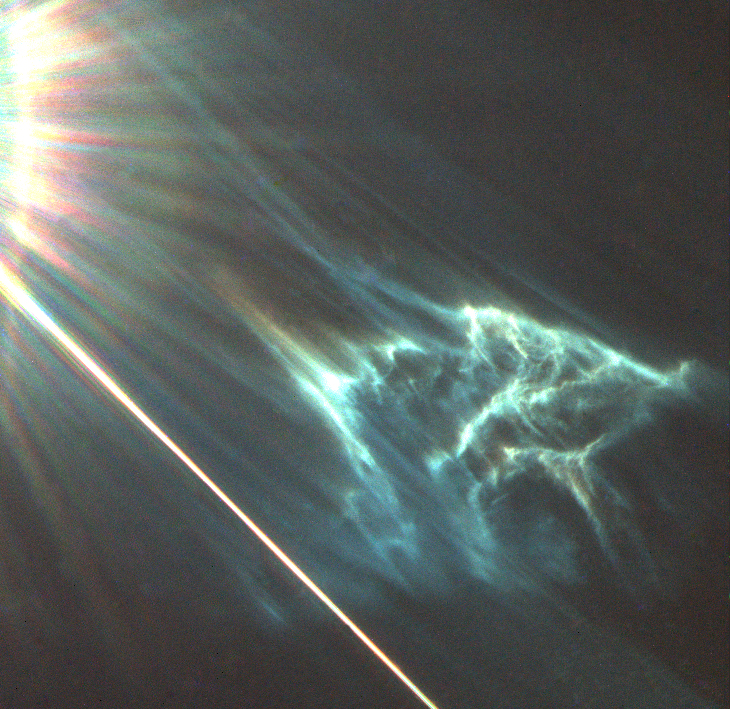Here is an image if IC349. It is a reflection nebula, and is illuminated by a star that is mostly out of the shot in the upper right hand part of the screen. The nebula is being eroded by the star.