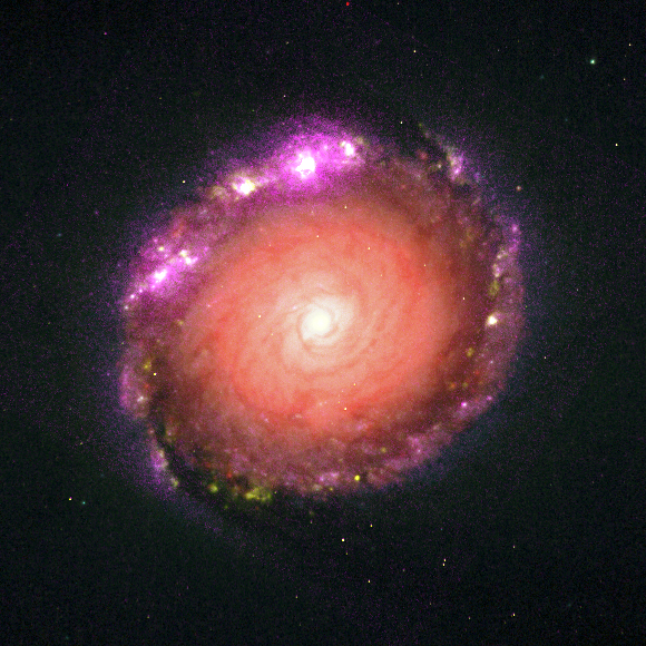 Composed from six "tiff" images downloaded direct from the ESA Hubble Image photo archive (Galaxies). heic0106c.tiff, heic0106d.tiff, heic0106e.tiff, heic0106f.tiff, heic0106h.tiff, heic0106i.tiff. Images as obtained do not require the use of the fits liberator but will need some knowledge of Adobe Photoshop layers procedures. A VERY easy one to set up and work on with interesting combinations possible. I did this as an experiment to see the quality of the final image that could be achieved and perhaps give some encouragement to early or new users to persevere with the use of the FITS Liberator and the use of data archives. Composed using ESA Hubble Archive images with Photoshop Elements 2 (8 bit) with PC Windows XP.